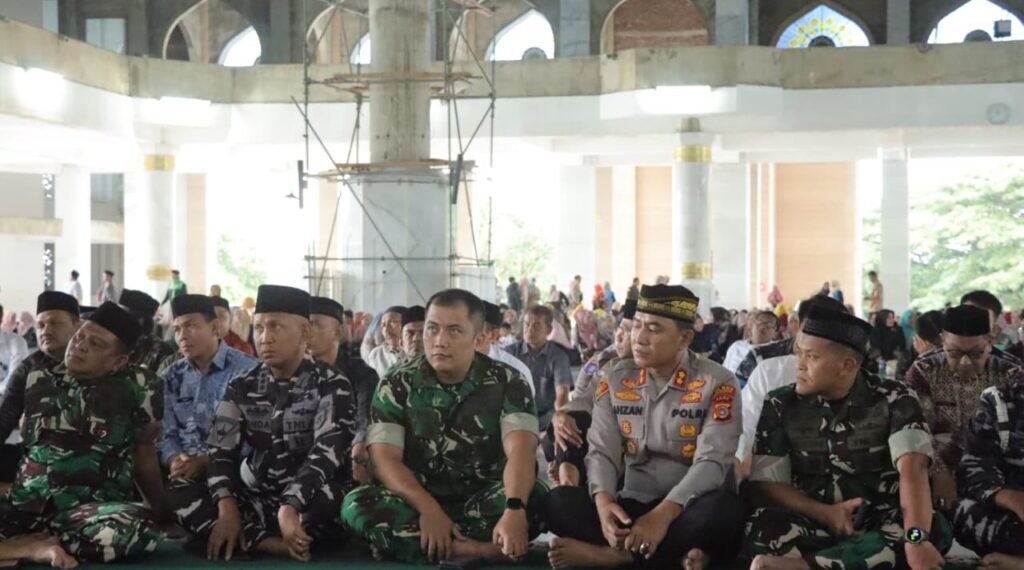 LHOKSEUMAWE – Kapolres Lhokseumawe AKBP Dr. Ahzan, S.H., S.I.K., M.S.M., M.H. menghadiri kegiatan peringatan Maulid Nabi Besar Muhammad SAW 1447 H/2025 M yang diselenggarakan oleh Pemerintah Kota Lhokseumawe di Masjid Agung Islamic Center, Kecamatan Banda Sakti, Kamis (16/10/2025).