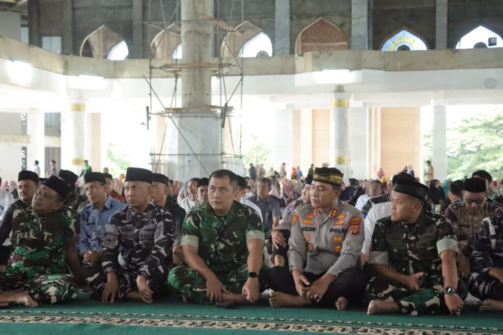 LHOKSEUMAWE – Kapolres Lhokseumawe AKBP Dr. Ahzan, S.H., S.I.K., M.S.M., M.H. menghadiri kegiatan peringatan Maulid Nabi Besar Muhammad SAW 1447 H/2025 M yang diselenggarakan oleh Pemerintah Kota Lhokseumawe di Masjid Agung Islamic Center, Kecamatan Banda Sakti, Kamis (16/10/2025).