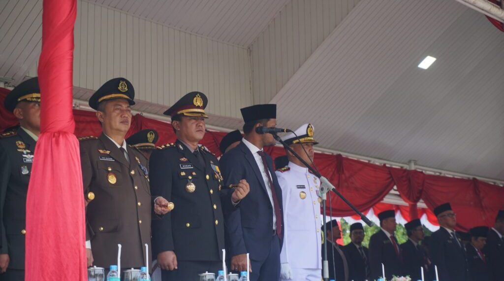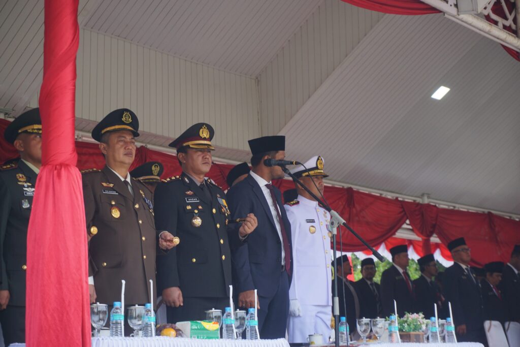 Lhokseumawe – Kapolres Lhokseumawe AKBP Dr. Ahzan., S.H., S.I.K., M.S.M., M.H menghadiri upacara peringatan Hari Ulang Tahun (HUT) ke-80 Republik Indonesia yang digelar di Lapangan Hiraq, Kota Lhokseumawe, Sabtu (17/8/2025) pagi.
