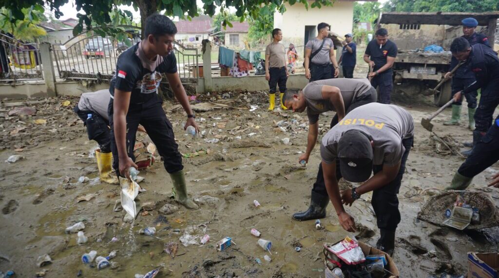Aceh Utara – Kepedulian Polri dalam membantu pemulihan pascabanjir kembali ditunjukkan oleh Polres Lhokseumawe. Kamis siang (18/12/2025), Kapolres Lhokseumawe AKBP Dr. Ahzan, S.H., S.I.K., M.S.M., M.H mengerahkan sejumlah personel untuk melaksanakan pembersihan Meunasah Blang Peuria di Desa Blang Peuria, Kecamatan Samudera, Kabupaten Aceh Utara, yang sebelumnya terdampak banjir.
