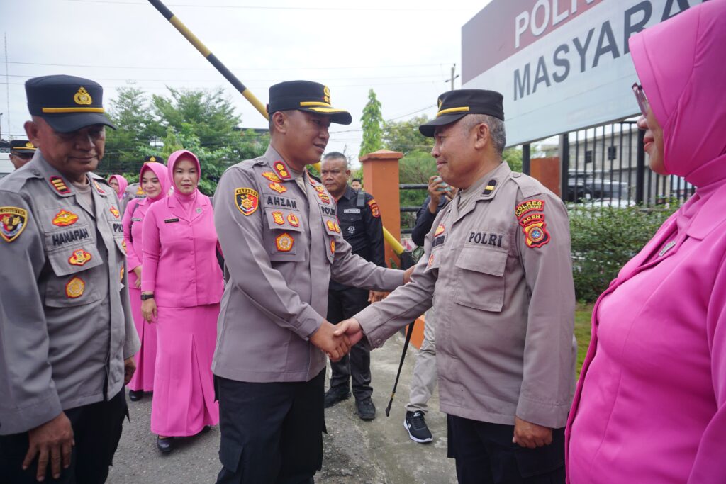 Sementara dalam arahannya, Kapolres Lhokseumawe AKBP Dr. Ahzan., S.H., S.I.K., M.S.M., M.M menekankan bahwa Polsek Banda Sakti memiliki peran strategis sebagai Polsek kota dan pusat keramaian. “Polsek ini dituntut mampu menjawab berbagai tantangan tugas, termasuk menangani kasus yang masuk dan mengantisipasi potensi kejahatan lintas batas melalui jalur laut, khususnya penyelundupan narkoba,” ujar Kapolres.