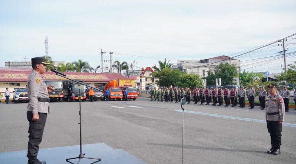 Lhokseumawe – Kapolres Lhokseumawe AKBP Dr. Ahzan, S.H., S.I.K., M.S.M., M.H memimpin apel kesiapsiagaan tanggap bencana di halaman Satya Haprabu Polres Lhokseumawe, Rabu pagi (5/11/2025).