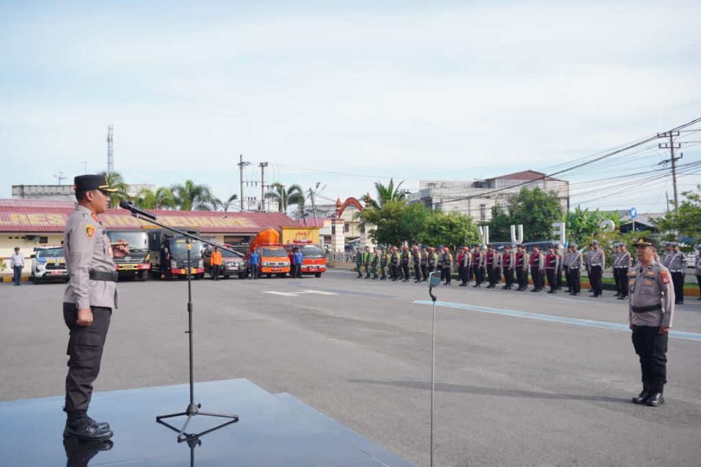 Lhokseumawe – Kapolres Lhokseumawe AKBP Dr. Ahzan, S.H., S.I.K., M.S.M., M.H memimpin apel kesiapsiagaan tanggap bencana di halaman Satya Haprabu Polres Lhokseumawe, Rabu pagi (5/11/2025).