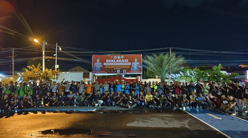 LHOKSEUMAWE – Kapolres Lhokseumawe, AKBP Dr. Ahzan, S.H., S.I.K., M.S.M., M.H., memimpin langsung deklarasi bersama penolakan terhadap geng motor dan aksi balap liar yang berlangsung di Kota Lhokseumawe, Senin (12/5/2025) malam.
