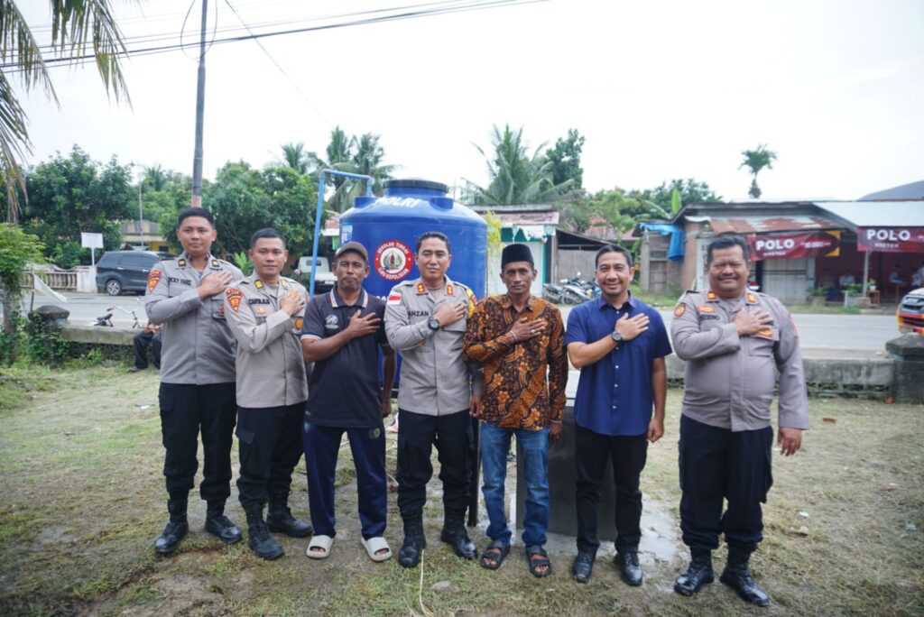 Kegiatan tersebut turut dihadiri sejumlah pejabat utama Polres Lhokseumawe, unsur Forkopimcam Dewantara, tokoh masyarakat, serta perangkat desa setempat. Di lokasi, Kapolres menandatangani prasasti sebagai tanda diresmikannya fasilitas air bersih yang kini dapat dimanfaatkan langsung oleh warga.