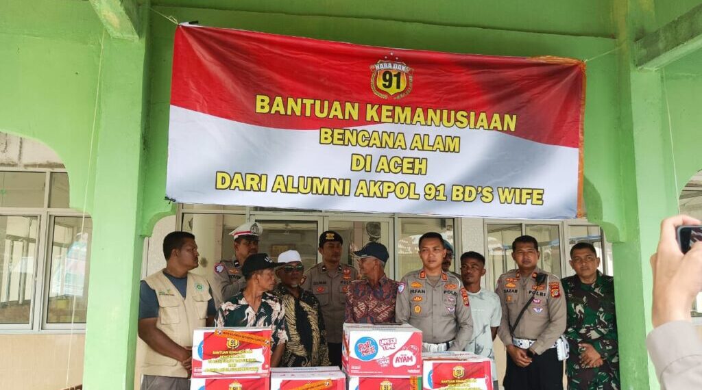 Aceh Utara – Polres Lhokseumawe menyerahkan bantuan alumni Akpol 91 BD’s Wife kepada warga terdampak banjir di Desa Bluka Tebai, Kecamatan Dewantara, Kabupaten Aceh Utara, Sabtu siang (6/12/2025).