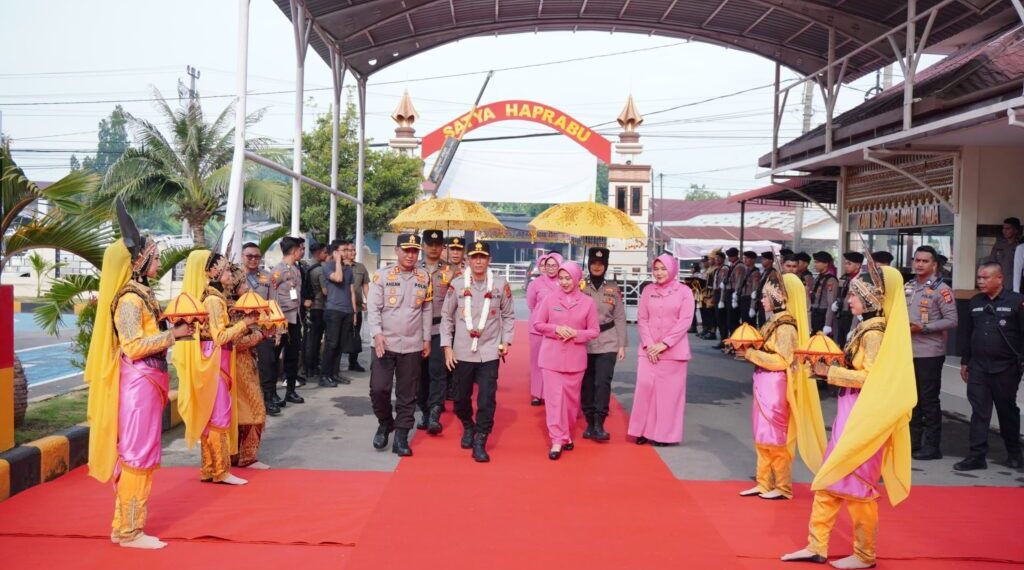 LHOKSEUMAWE – Kapolres Lhokseumawe AKBP Dr. Ahzan, S.H., S.I.K., M.S.M., M.H. menyambut kunjungan kerja Kapolda Aceh Irjen Pol Drs. Marzuki Ali Basyah, M.M., Senin siang (17/11/2025). Kedatangan Kapolda turut didampingi istri, Ny. Irawati Marzuki, selaku Ketua Bhayangkari Aceh, serta Wakapolda Aceh Brigjen Pol Ari Wahyu Widodo, S.I.K., dan sejumlah pejabat utama Polda Aceh.