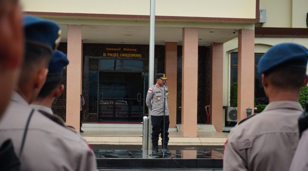 Lhokseumawe — Kapolres Lhokseumawe AKBP Dr. Ahzan, S.H., S.I.K., M.S.M., M.H memimpin apel penyambutan personel perbantuan BKO Brimob 100 personil Brimob dari Polds Kaltim yang akan melaksanakan misi kemanusiaan dalam rangka pemulihan pascabencana banjir di wilayah hukum Polres Lhokseumawe, Minggu (28/12/2025).