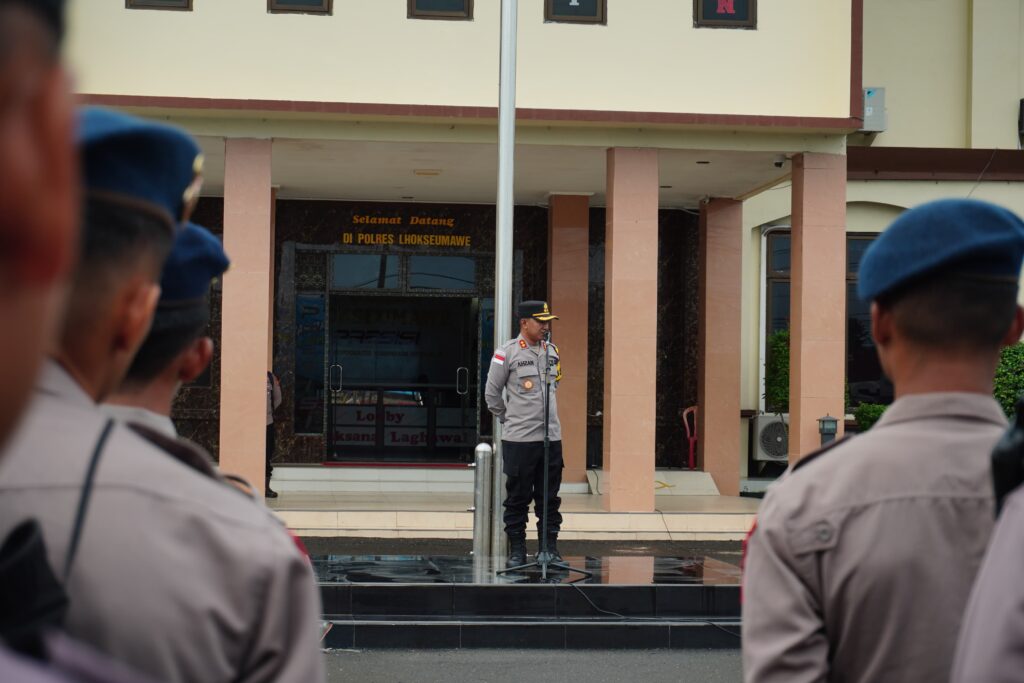 Apel penyambutan tersebut diikuti oleh para pejabat utama Polres Lhokseumawe, personel Polres Lhokseumawe, serta personel BKO Brimob yang baru tiba untuk memperkuat upaya penanganan dampak bencana alam banjir yang melanda sejumlah wilayah.