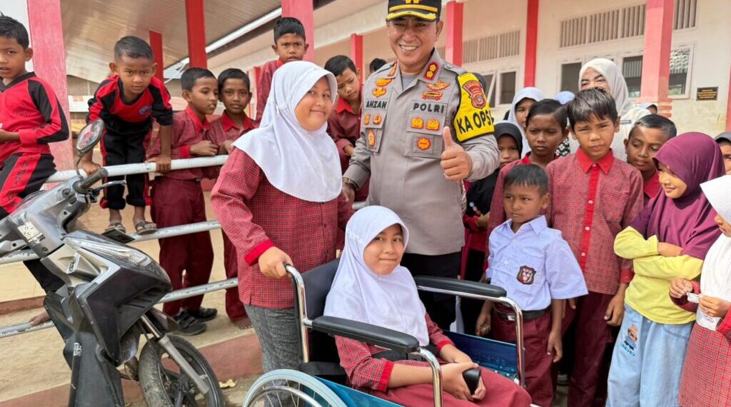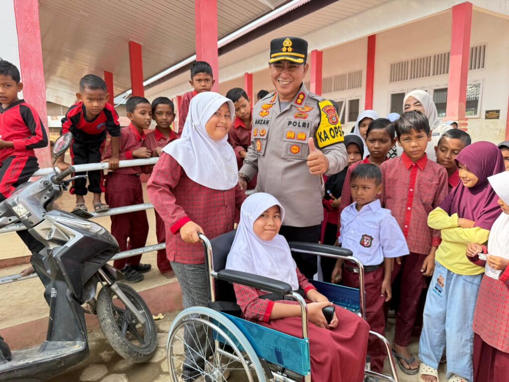 Aceh Utara – Wujud kepedulian Polri terhadap masyarakat kembali ditunjukkan Kapolres Lhokseumawe AKBP Dr. Ahzan, S.H., S.I.K., M.S.M., M.H., dengan menyerahkan bantuan kursi roda kepada seorang siswi penyandang disabilitas di SD Negeri 5 Muara Batu, Kecamatan Muara Batu, Kabupaten Aceh Utara, Kamis (22/1/2026) pagi.