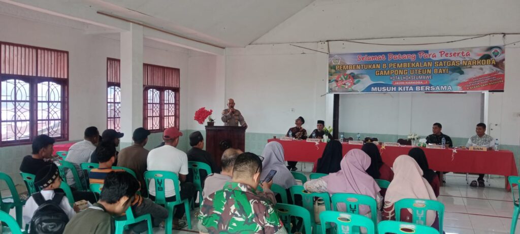 Lhokseumawe – Kapolsek Banda Sakti AKP Hanafiah, S.Ag., M.M menegaskan pentingnya peran Satgas Narkoba gampong sebagai ujung tombak dalam pencegahan dan pemberantasan narkoba. Hal itu disampaikan pada kegiatan pembentukan dan pembekalan Satgas Narkoba Gampong Uteun Bayi, Kecamatan Banda Sakti, Kota Lhokseumawe, Jumat (12/9/2025).