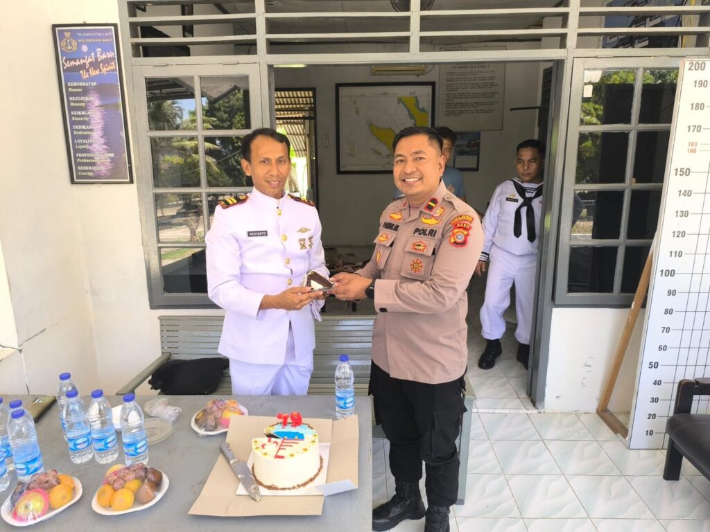 Dalam kesempatan tersebut, Ipda Fadhlullillah bersama anggotanya mengantarkan langsung kue ulang tahun sebagai simbol penghargaan dan ucapan selamat kepada Dan Pos AL Krueng Gekueh, Lettu Laut (S) Heryanto.