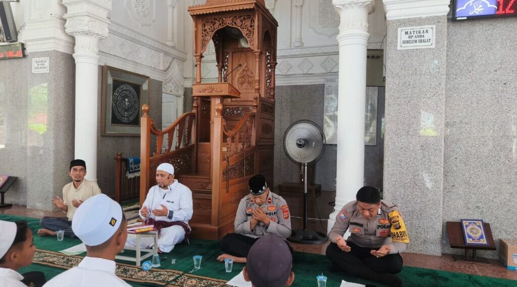Lhokseumawe – Kapolsek Muara Dua Ipda Yudira Nugraha menghadiri kegiatan yasinan dan doa bersama untuk para syuhada dalam rangka memperingati Hari Kemerdekaan Republik Indonesia ke-80. Acara tersebut berlangsung di Masjid Al Hikmah, Desa Utenkoet, Kecamatan Muara Dua, Kota Lhokseumawe, Rabu (20/8/2025) pagi.