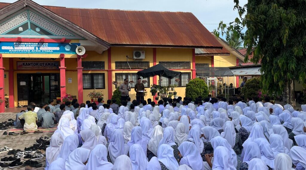 Aceh Utara – Dalam rangka menyambut tahun ajaran baru 2025, Kapolsek Sawang IPTU Slamet Rezki, S.H melakukan kunjungan ke SMA Negeri 1 Sawang, Kecamatan Sawang, Kabupaten Aceh Utara, Jumat pagi (18/5/2025). Kunjungan tersebut bertujuan untuk memberikan arahan dan motivasi kepada para siswa-siswi baru terkait bahaya narkoba dan kenakalan remaja.