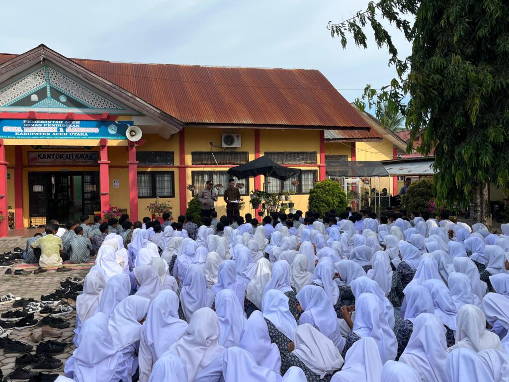 Aceh Utara – Dalam rangka menyambut tahun ajaran baru 2025, Kapolsek Sawang IPTU Slamet Rezki, S.H melakukan kunjungan ke SMA Negeri 1 Sawang, Kecamatan Sawang, Kabupaten Aceh Utara, Jumat pagi (18/5/2025). Kunjungan tersebut bertujuan untuk memberikan arahan dan motivasi kepada para siswa-siswi baru terkait bahaya narkoba dan kenakalan remaja.
