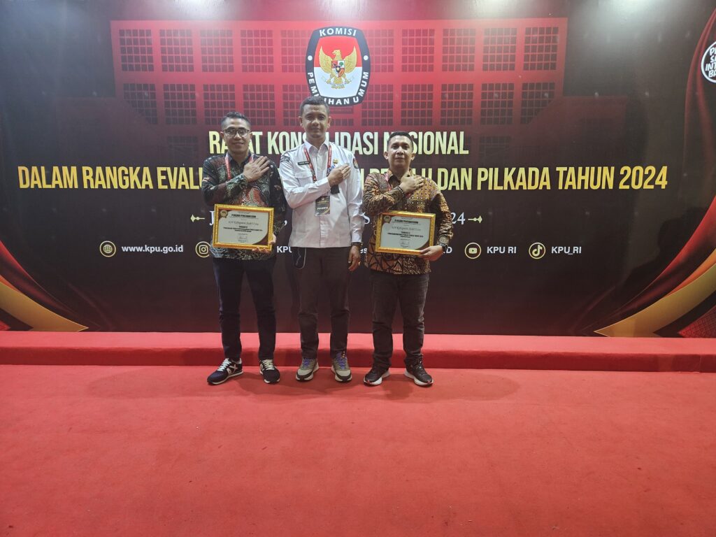Masing-masing, Penghargaan Terbaik II pengelolaan teknis penyelenggaraan Pemilu 2024 tingkat kabupaten/kota besar, dan penghargaan Terbaik III pemutakhiran data pemilih Pemilu 2024 tingkat kabupaten/kota besar dari KPU RI.