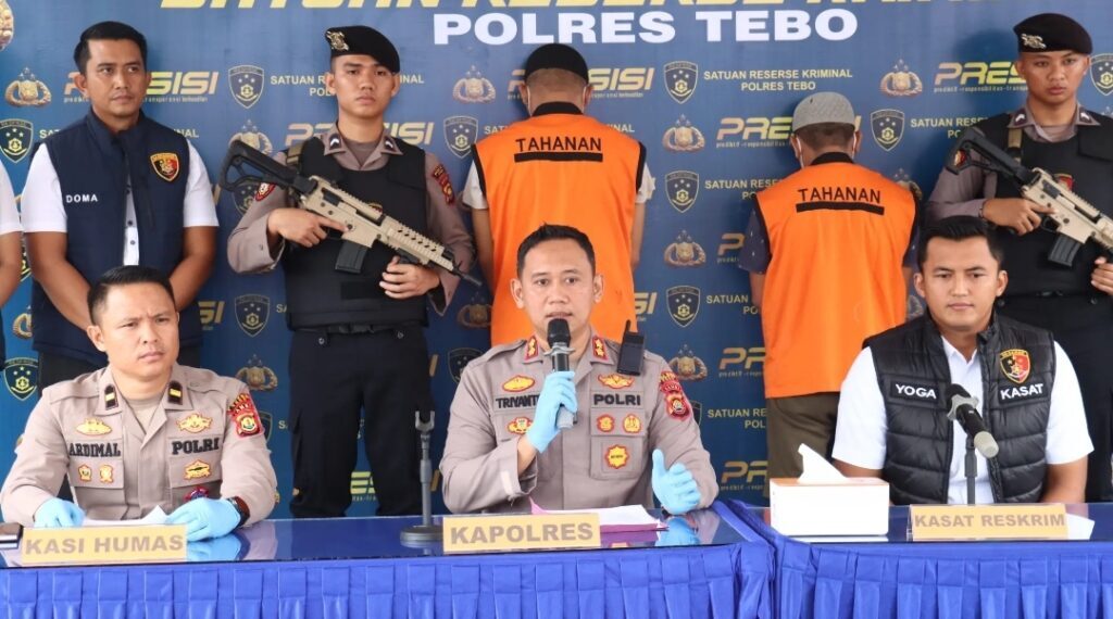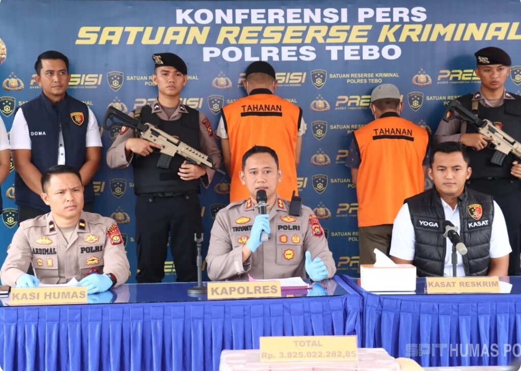 “Dari hasil penyelidikan yang dilakukan oleh Satreskrim Polres Tebo, terungkap adanya dugaan kuat tindak pidana korupsi dalam pelaksanaan kredit usaha rakyat (KUR) di salah satu bank syariah di wilayah Rimbo Bujang pada tahun 2021. negara mengalami kerugian sebesar Rp4,8 miliar. Ini berasal dari 24 nasabah KUR kecil dan 2 nasabah KUR mikro yang datanya direkayasa. Kita sudah menetapkan dua orang tersangka, yakni EW selaku Kepala Cabang dan MT selaku Marketing, yang diduga kuat memanipulasi data nasabah untuk meloloskan pencairan dana. Ini adalah bentuk kejahatan terstruktur dan akan kami tindak tegas sesuai hukum yang berlaku,” tegas Kapolres Tebo