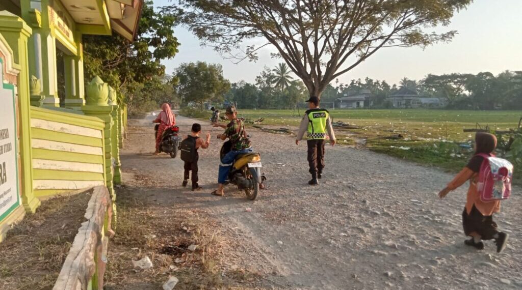 LHOKSEUMAWE, Dalam upaya untuk meningkatkan kelancaran arus lalu lintas dan memastikan keamanan masyarakat di sekitar area jalan Lintas depan sekolah MIN 25 Desa Keude Simpang Empat Polsek Simpang Kramat Polres Lhokseumawe Polda Aceh hari ini melaksanakan kegiatan “Strong Point Pagi” di lokasi area Sekolah Kec. Simpang Kramat Kab. Aceh Utara, Jum.at, 23/09/2024 pagi.