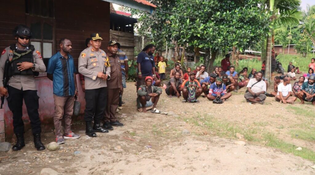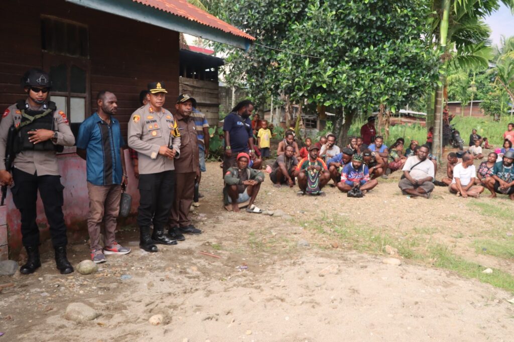 PAPUA – Kapolres Nabire AKBP Samuel D. Tatiratu, S.I.K., bersama personel gabungan Polres Nabire bertindak cepat meredam ketegangan antar dua keluarga yang terlibat perselisihan di Kampung Wadio, Distrik Nabire Barat, pada Selasa sore (15/7).