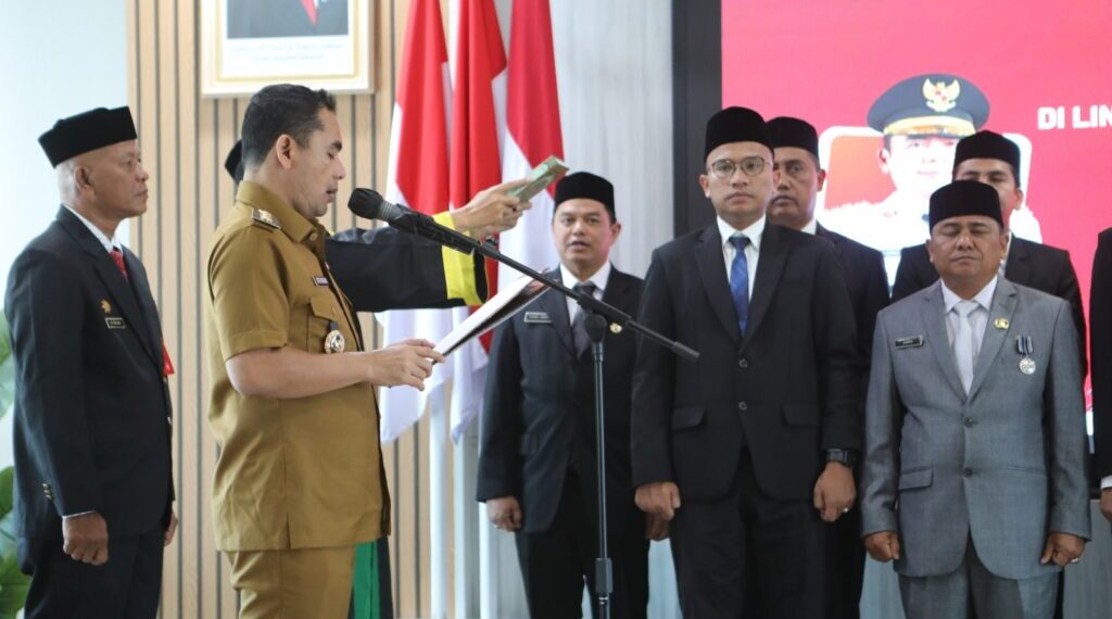Lhokseumawe – Wali Kota Lhokseumawe, Dr. Sayuti Abubakar S.H., M.H., melantik 15 Pejabat Administrator di Lingkungan Pemerintah Kota Lhokseumawe di Aula Kantor Wali Kota Lhokseumawe, Selasa (08/04). Pelantikan ini sesuai dengan Persetujuan Badan Kepegawaian Negara Republik Indonesia Nomor 02445/R-AK.02.03/SD/K/2025.