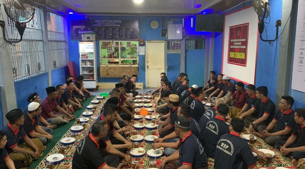 ACEH UTARA – Lapas Kelas IIB Lhoksukon, Aceh Utara menggelar buka puasa bersama Warga Binaan Pemasyarakatan (WBP), Rabu, 12 Maret 2025. Setelah itu dilanjutkan shalat magrib berjamaah, shalat tarawih, mendengarkan tausiah keagamaan dan tadarus.