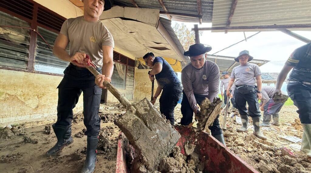 Hasil kerja bersama menunjukkan progres signifikan. Lumpur yang mengeras berhasil diangkat dari dalam ruangan Aspol, halaman yang sebelumnya tertutup material banjir kini siap dirapikan, sementara lorong-lorong kecil telah bersih dan kembali dapat dilalui.
