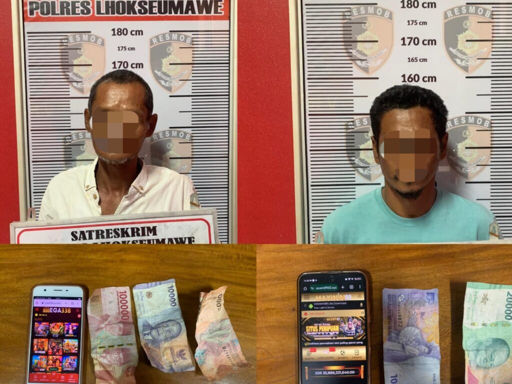 Kedua terduga pelaku masing-masing berinisial MZ (46), wiraswasta, warga Kabupaten Aceh Timur, dan IR (52), seorang sopir, warga Kota Langsa. Dari tangan para pelaku, polisi menyita dua unit telepon genggam yang berisi situs judi online Slot Mahjong serta uang tunai dengan total Rp145 ribu sebagai barang bukti.