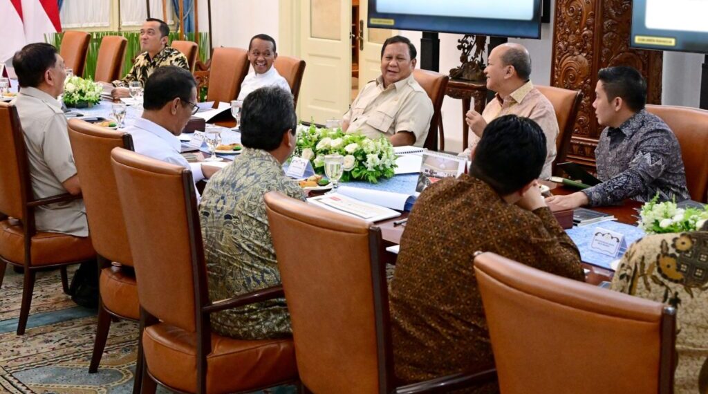 Jakarta – Menteri Pertahanan RI Sjafrie Sjamsoeddin bersama sejumlah menteri dan Satgas Hilirisasi menghadiri rapat terbatas (ratas) yang dipimpin oleh Presiden RI Prabowo Subianto, di Istana Merdeka, Jakarta, pada Jumat, (23/5/2025). Rapat tersebut dilaksanakan guna membahas percepatan proyek hilirisasi nasional dan tindak lanjut terhadap proyek prioritas hilirisasi yang mencakup berbagai sektor strategis.