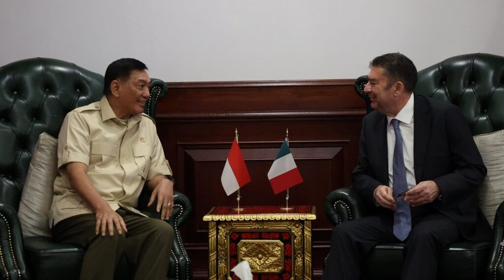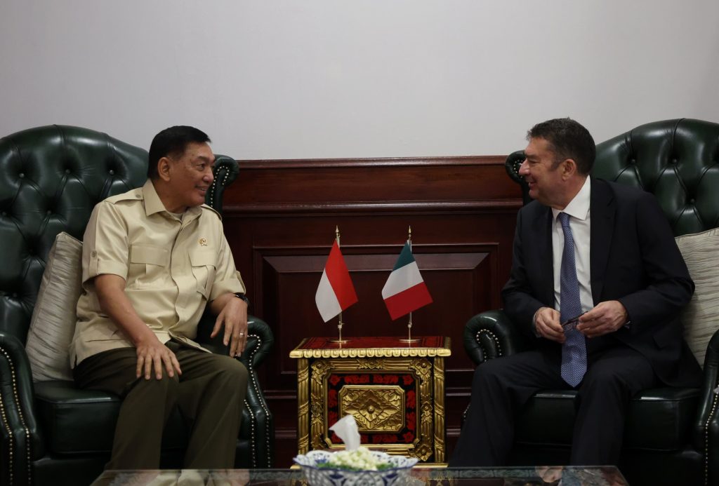 Jakarta – Menteri Pertahanan RI Sjafrie Sjamsoeddin menerima kunjungan Duta Besar (Dubes) Italia untuk Indonesia H.E. Roberto Colaminè, di kantor Kementerian Pertahanan, Jakarta, Kamis (17/4/2025).