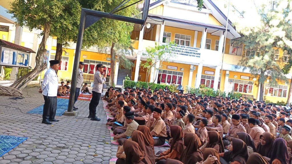 Kapolsek Banda Sakti, Iptu Zul Akbar, SE, memberikan penyuluhan penting kepada 500 peserta yang terdiri dari siswa, guru, dan staf sekolah.