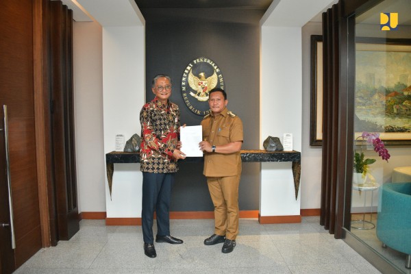 Jakarta – Menteri Pekerjaan Umum (PU) Dody Hanggodo menerima kunjungan Bupati Muna Barat La Ode Darwin di Kantor Kementerian PU, Selasa (6/5). Pertemuan ini membahas rencana dukungan infrastruktur Kementerian PU untuk mendorong pembangunan di Kabupaten Muna Barat, Sulawesi Tenggara.