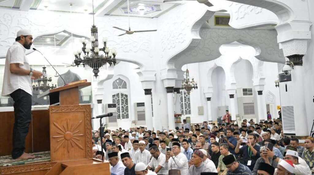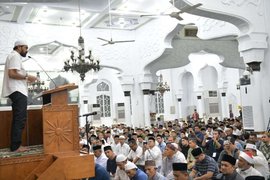 Banda Aceh : Gubernur Aceh, Muzakir Manaf atau akrab disapa Mualem melaunching Instruksi Gubernur Aceh Nomor 1 Tahun 2025 tentang Pelaksanaan Salat Fardhu Berjamaah bagi Aparatur dan Masyarakat serta Mengaji di setiap Satuan Pendidikan di Aceh, pada Minggu, (16/3/2025).