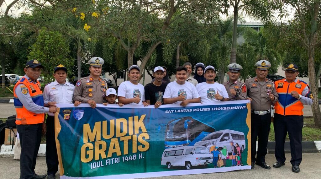 Lhokseumawe – Dalam upaya mendukung kelancaran arus mudik Lebaran, Satlantas Polres Lhokseumawe bersama PT. Pupuk Iskandar Muda (PIM) dan lintas sektoral menggelar program mudik gratis di halaman PT. PIM, Jumat (28/3/2025). Kegiatan ini diikuti oleh 100 pemudik dengan tujuan Kualanamu, Medan, Banda Aceh, dan Aceh Selatan.