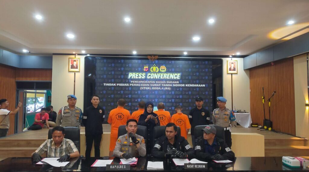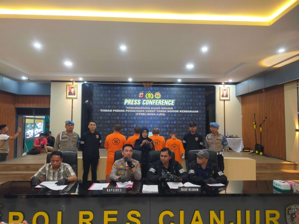 Cianjur – Jajaran Satreskrim Polres Cianjur mengamankan empat orang tersangka pemalsu ribuan lembar Surat Tanda Nomor Kendaraan (STNK) mobil.