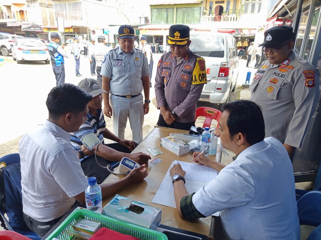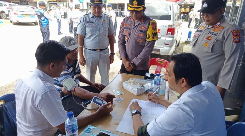 ACEH UTARA – Satuan Lalu lintas Polres Aceh Utara menggelar tes urin dan pemeriksaan kesehatan bagi sopir kendaraan angkutan umum. Razia Operasi Keselamatan Seulawah yang dipimpin Kapolres Aceh Utara AKBP Nanang Indra Bakti itu digelar di depan Pos Lantas Terminal Kecamatan Lhoksukon, Aceh utara, Kamis, 20 Februari 2025.