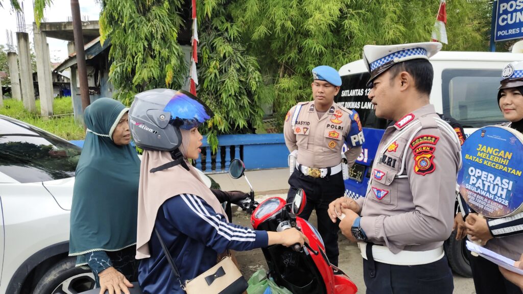 Lhokseumawe – Dalam rangkaian Operasi Patuh Seulawah 2025, Satuan Lalu Lintas (Satlantas) Polres Lhokseumawe terus menggencarkan imbauan kepada masyarakat untuk tertib berlalu lintas, salah satunya dengan mengedepankan penggunaan helm berstandar SNI bagi pengendara dan penumpang sepeda motor.