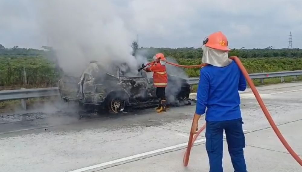 Disampaikan, berdasarkan hasil investigasi lapangan, kendaraan melintas dari arah Sungai Pinang menuju Bangkinang. Diduga mengalami kebakaran akibat konsleting listrik pada kendaraan dimana kendaraan mengeluarkan asap dari bawah mesin. Sehingga pengemudi memutuskan untuk berhenti di bahu jalan.