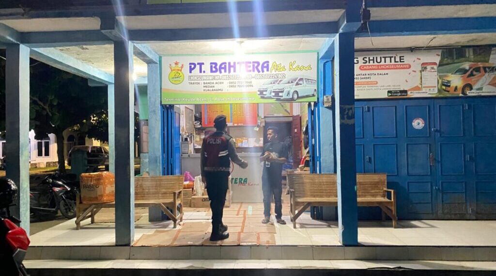 Lhokseumawe – Guna menciptakan situasi yang aman dan kondusif, personel Sat Samapta Polres Lhokseumawe melaksanakan patroli Perintis Presisi dengan menyasar Terminal Bus Baru (Terminal Pase) Kota Lhokseumawe, Minggu (19/4/2026) malam.