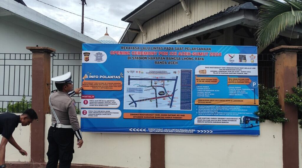 Pemasangan spanduk ini bertujuan untuk meningkatkan akses informasi bagi masyarakat yang berencana menghadiri acara pembukaan PON XXI di Banda Aceh, sehingga mereka dapat menyesuaikan rute perjalanan dan menghindari potensi kemacetan.
