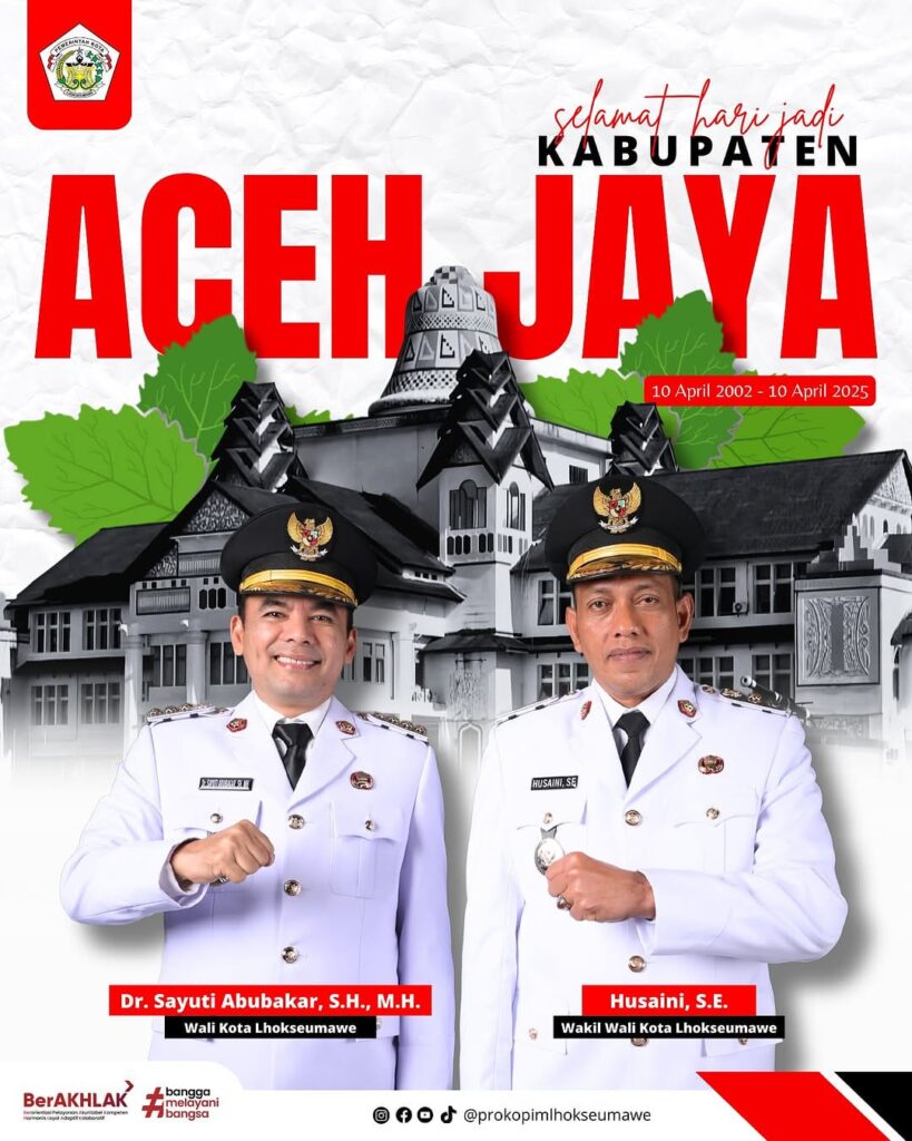 Pemerintah Kota Lhokseumawe : Dirgahayu Kabupaten Aceh Jaya ke 23!