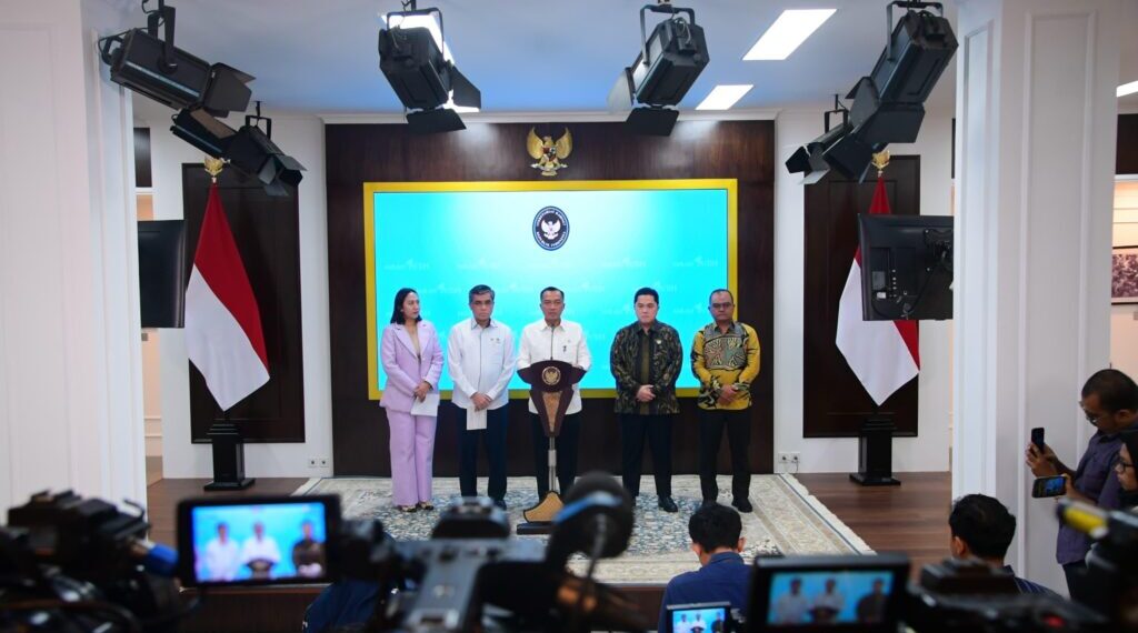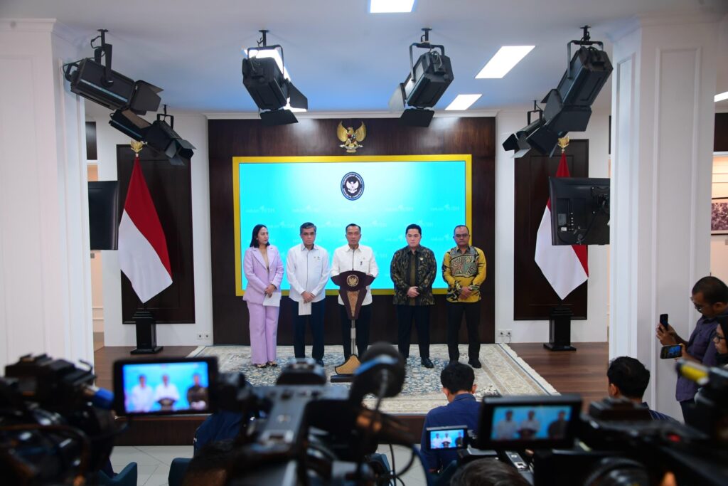 Turut hadir dalam keterangan pers tersebut adalah Menteri Sekretaris Negara Prasetyo Hadi, Menteri BUMN Erick Thohir, Menteri Ketenagakerjaan Yassierli, Koordinator Serikat Pekerja Sritex Group Slamet Kaswanto, dan perwakilan tim kurator PT Sritex Nurma Sadiqin.