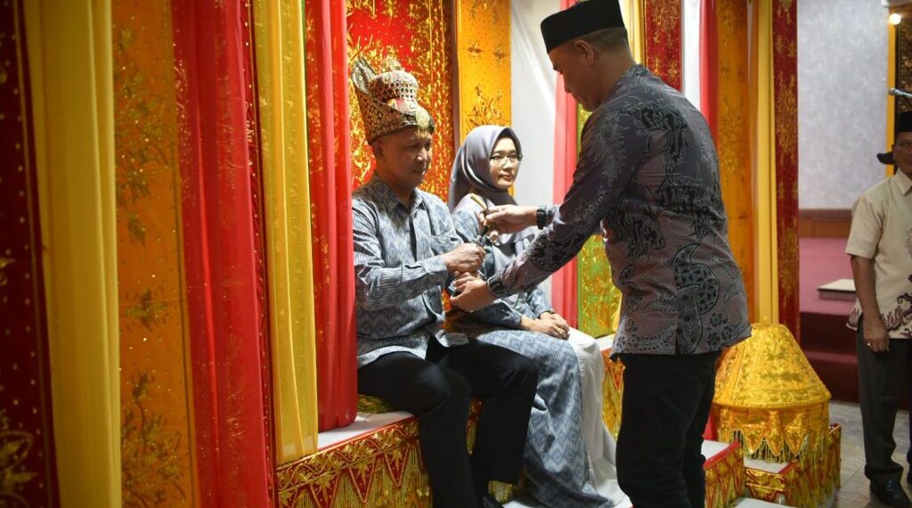 LHOKSEUMAWE — Pemerintah Kabupaten Aceh Utara melakukan peusijuek (tepung tawar) untuk Letkol Mar Bondan Wahyu Adi, M.Tr.Opsla, selaku Komandan LANAL Lhokseumawe yang baru.