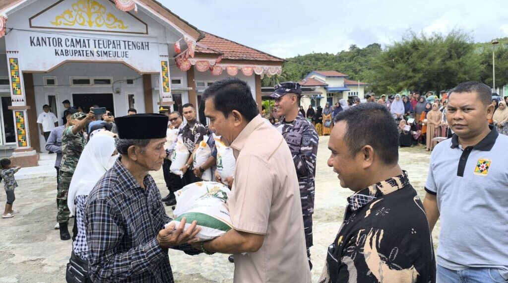 Sinabang – Pemerintah Kabupaten Simeulue melakukan penyaluran bantuan pangan gratis Tahun 2025 berupa beras kepada. 10.785 penerima, dengan jumlah 215.700 kilogram. Bantuan itu diserahkan secara simbolis oleh Bupati Simeulue, Mohammad Nasrun Mikaris, pada Jumat 25/7/2025, di halaman Kantor Camat Teupah Tengah.