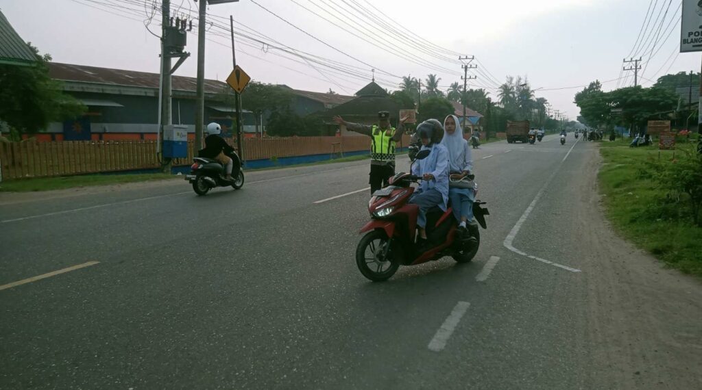 Giat ini melibatkan dua personel Polsek Blang Mangat yang bertugas untuk melakukan pengamanan dan pengaturan arus lalu lintas di kawasan tersebut. Tujuan utama dari kegiatan ini adalah untuk mengantisipasi potensi kemacetan yang dapat mengganggu aktivitas masyarakat, terutama di sekitar pintu masuk sekolah SMP yang menjadi titik rawan kepadatan lalu lintas pada pagi hari.