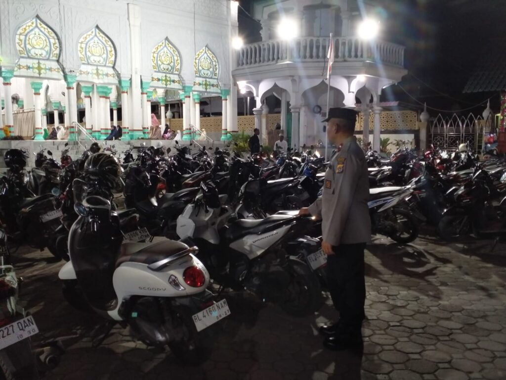 Kegiatan pengamanan tersebut berlangsung mulai pukul 20.00 WIB hingga 21.40 WIB dengan melibatkan dua personel kepolisian yang disiagakan di sekitar area masjid.