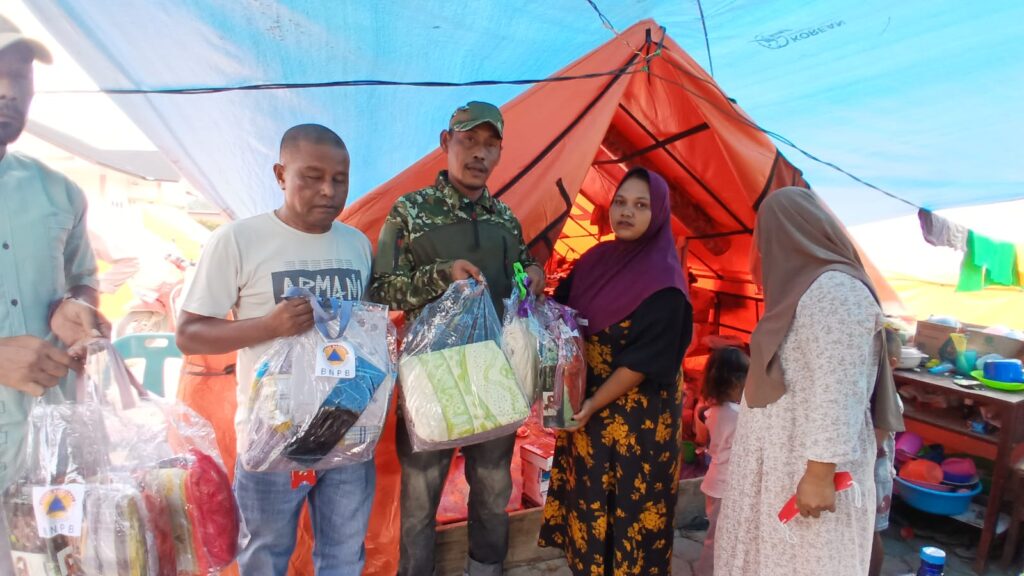 Adapun bantuan yang diserahkan terdiri dari bahan pangan berupa beras dan susu bayi, serta perlengkapan ibadah seperti Al-Qur’an, mukena, sajadah, dan kain sarung. Selain itu, guna menjamin keberlangsungan pendidikan anak-anak di pengungsian, turut diberikan bantuan tujuh pasang seragam sekolah dan buku tulis.