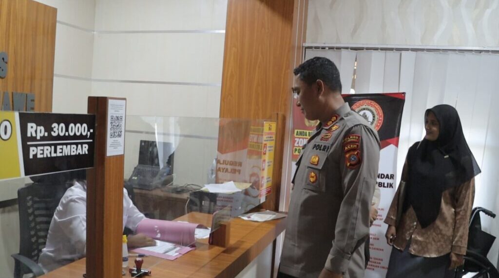 Lhokseumawe – Lonjakan permohonan Surat Keterangan Catatan Kepolisian (SKCK) dalam beberapa hari terakhir mendapat perhatian khusus dari Kapolres Lhokseumawe AKBP Dr. Ahzan, S.H., S.I.K., M.S.M., M.H. Senin (22/9/2025), Kapolres turun langsung mengecek proses pelayanan pembuatan SKCK di Sentra Pelalayanan Kepolisian Terpadu (SPKT) Mapolres Lhokseumawe.