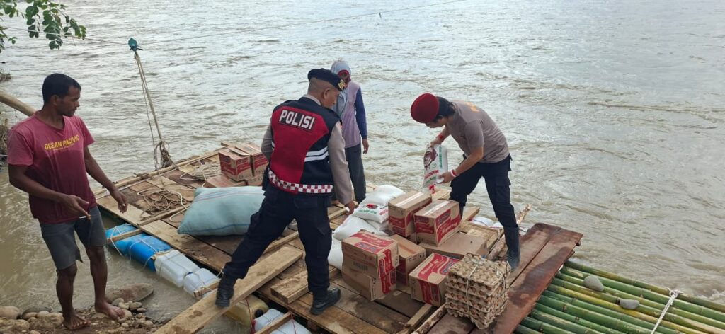 Kapolres Lhokseumawe AKBP Dr. Ahzan, S.H., S.I.K., M.S.M., M.H melalui Kapolsek Sawang IPTU Suria mengatakan, pendistribusian bantuan kali ini dilakukan dengan cara yang cukup menantang. Petugas harus menggunakan rakit untuk menyeberangi kawasan yang masih terputus jalannya akibat arus banjir yang belum surut.