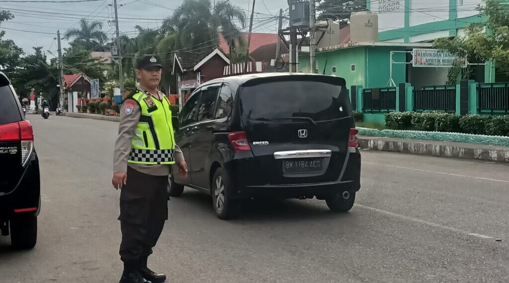Lhokseumawe – Guna mengantisipasi kemacetan dan menciptakan kelancaran arus lalu lintas di pagi hari, personel Polsek Banda Sakti Polres Lhokseumawe melaksanakan kegiatan strong point atau pengamanan dan pengaturan lalu lintas di sejumlah titik strategis di Kecamatan Banda Sakti, Rabu pagi (9/7/2025).