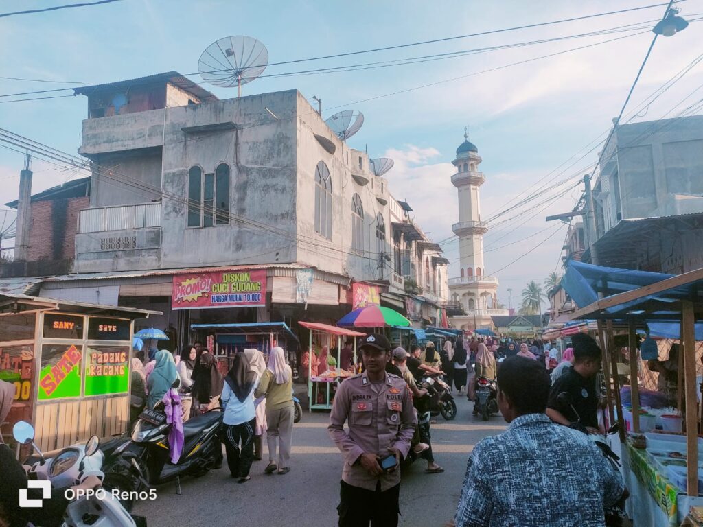 Lhokseumawe – Menjelang waktu berbuka puasa di bulan suci Ramadhan 1446 H, personel Polsek Blang Mangat Polres Lhokseumawe melaksanakan pengamanan dan pengaturan arus lalu lintas di Simpang dan Pasar Keude Punteut, Kecamatan Blang Mangat, Kota Lhokseumawe, Minggu (23/3/2025) sore.